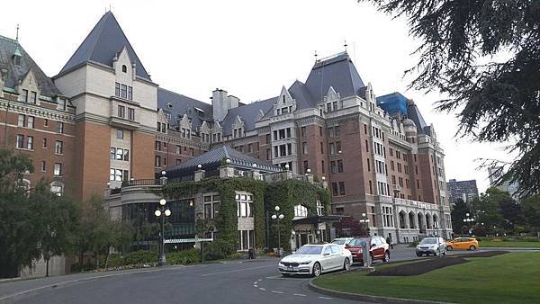 於1908年開始營運的帝后飯店,位於維多利亞市中心港灣區,外觀採用城堡型的建築,典雅的紅色外觀牆面爬滿了綠油油的長春藤,整棟建築與裝潢、擺飾、都充滿著濃濃的貴族氣氛,是一座具有皇室華麗氣派之美的飯店。在這充滿歷史的一流旅館,昨晚當然是一夜好眠。清晨散步在港灣區內,維多利亞遊客中心正好在帝后飯店的右前方,從這裡眺望內港,港畔以花圃排列成的「Welcome to Victoria」就是維多利亞向觀光客們的大聲問好,另外這裡還有議會大廈、帝后飯店、BC博物館,又擁有浪漫的港灣景致;遊艇、水上飛機和風帆等等,熱鬧可想而知。
