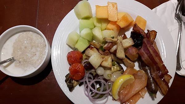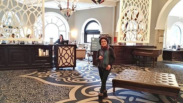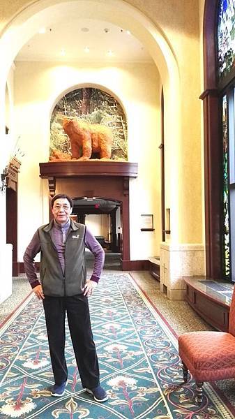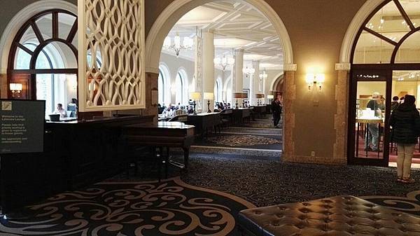旅行中最不想碰到的是下雨天,昨天夜裡就開始下大雨了,原本計劃清晨再繞著露意絲湖走一圈的希望落空。戶外雨朦朧,霧也濛濛,視線很差,心情也盪到谷底,既然不能欣賞湖畔風光,只好在城堡飯店內遊逛。