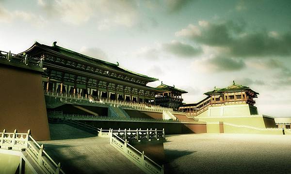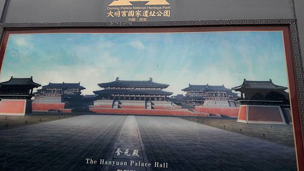 大明宮建在「龍首原」的黃土台地上,進入園區的大門是重修過後的丹鳳門~是大明宮的正門,走過金水橋,眼前的高台遺址便是正殿含元殿~皇帝大朝的地方,接著是數不清的層層疊疊、威武莊嚴、視野開闊的宮殿樓台、皇家池苑、亭台樓閣、九曲門、太液池等等,這些都要發揮天馬行空的想像力才能大略勾勒出它們的位置與大唐極盛時期的絕代風華。