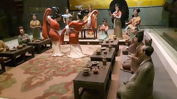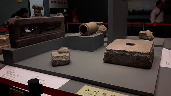 接著參觀大明宮遺址博物館,這裡顧名思義就是展示大明宮歷史文化為主題的博物館,向世人展示了唐代文物精品,包括了唐朝服飾、絲綢、唐俑、唐瓦、磚、柱、瓷器等等,此外也展示各種出土古物,許多有關大明宮的建築介紹以及唐代文化的介紹,用各種模擬的方式讓人們了解當時大明宮中的人物及生活。展示品數量並不多,繞一圈出來大約40分鐘。下一站是參觀西安明古城牆區。