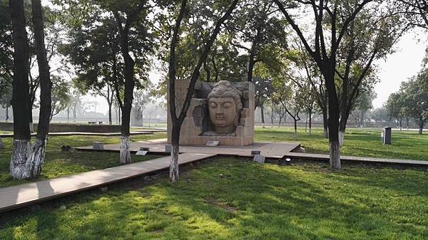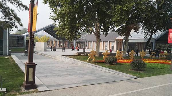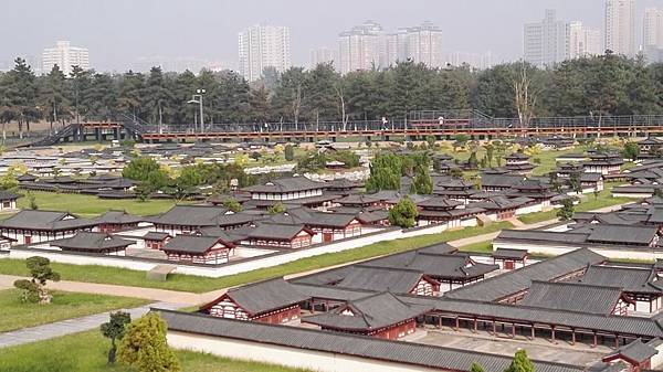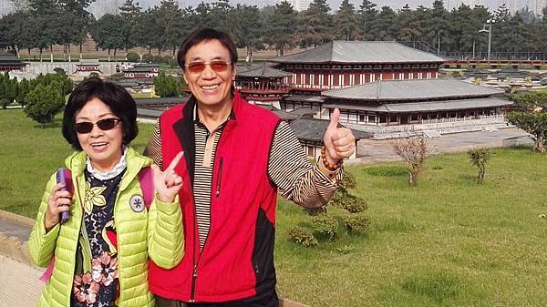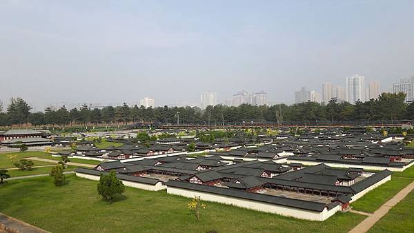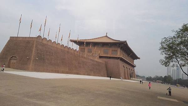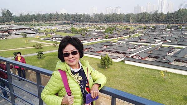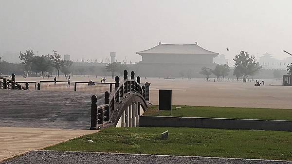 午餐後繼續參觀,大明宮遺址的面積非常大,用雙腳是無法走得完的,只能搭乘園區電瓶車繞園一周。事實上也看不到什麼精華,雖說大明宮當年是號稱千宮之宮,但畢竟是幾百年前的東西,已過了這麼多個朝代,再加上這片土地上世世代代已經居住了許多平民百姓,地面上的遺蹟早已破壞殆盡,蕩然無存。雖說研究團隊往下挖還是從地質層中取出許多歷史文物,但就以可見的建築古蹟而言,除了造宮殿地基的夯土堆,實在已經什麼都沒有了,我們只能在另一個微縮景觀區看到中國考古學家根據考古遺址和史書記載,按照比例微縮,建成了1300年前唐王朝輝煌的皇宮大明宮建築群復原圖。