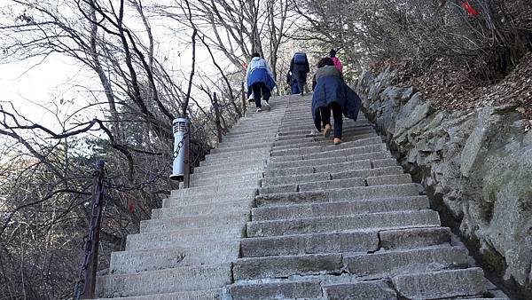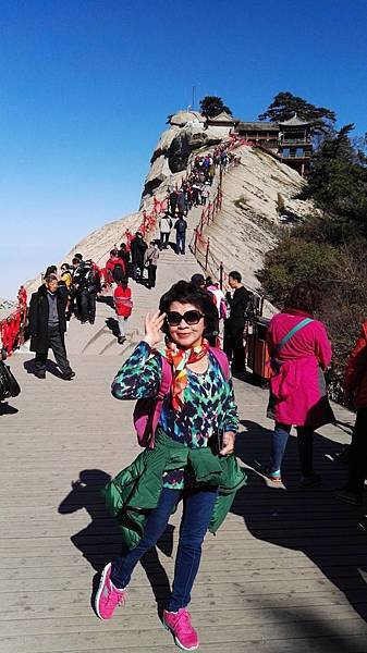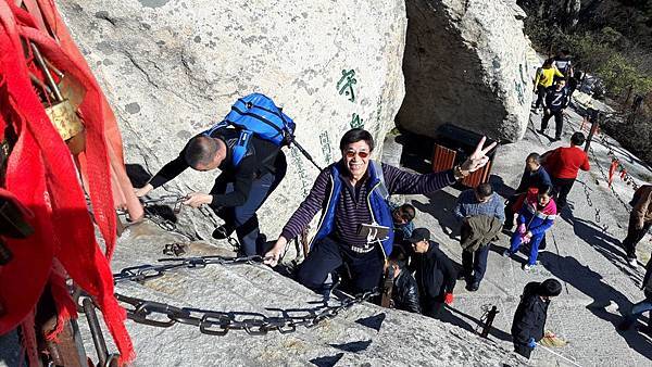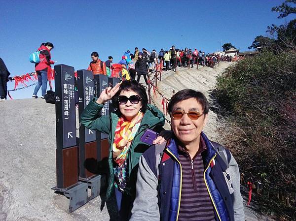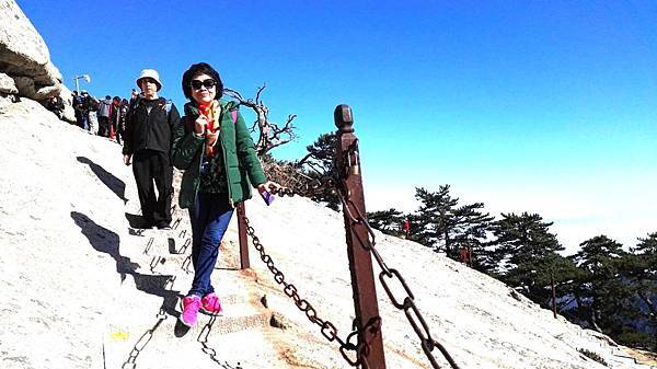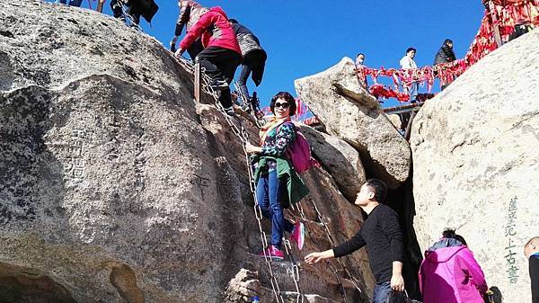 遊罷西峰,再往南峰前進,由於謝老爺的腳舉步維艱,我們走得慢也落後很多,最後他選擇留在西峰慢慢蹓躂,我一人獨闖難度較高的南峰。隨團遊覽華山的時間只有短短4小時左右,下午2:00點要回到索道口集合下山,在有限的時間內,每一處景點也只能點到為止,無法長時間逗留。
