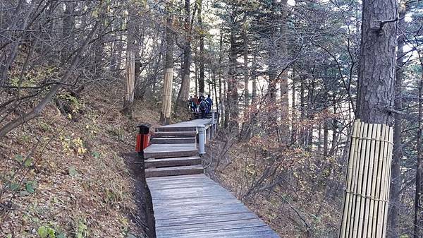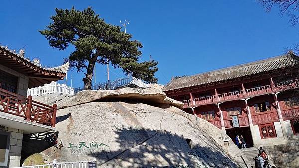 從南峰眺望主峰之一的東峰,峰頂有一座朝陽台是觀日出的地方,因此東峰也稱「朝陽峰」。東峰的景點也不少,如三茅洞、下棋亭、鷂子翻身等。從南峰到東峰需時至少40分鐘,此時正猶豫著是否要繼續往前走,因為時間似乎不太夠了,何況返回索道口還有一段長路呢,還是折返吧。東、北、中三峰的美景如擦耳崖、千尺幢、百尺峽和駑心石等就留待下次啦!