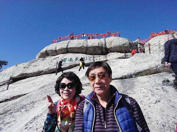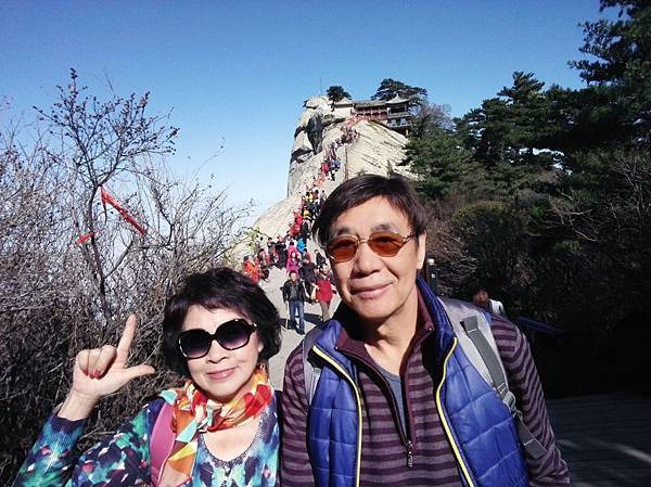 華山自古以來就是負有盛名的旅遊勝地,其遊覽面積約150平方公里,山景秀麗,奇峰高聳,絕壁如削。在奇險的華山上,以石階多而聞名,沒上山之前,謝老爺就開始憂心忡忡,因為這一陣子他的膝關節不好,尚在治療中,走一般平地尚可,爬坡上階較有困難,但即然上了華山,豈能空手而歸,就量力而為吧!能走多少就多少。