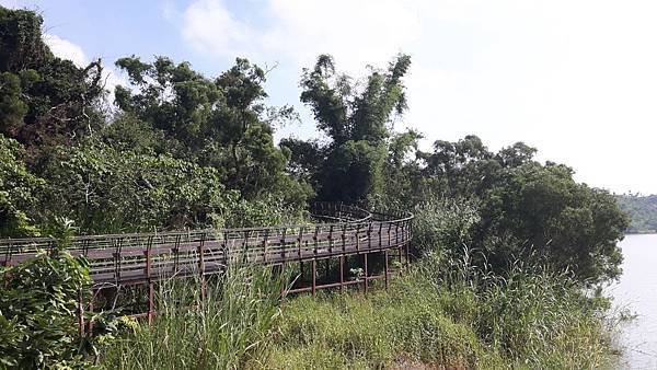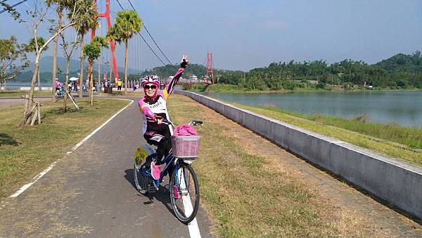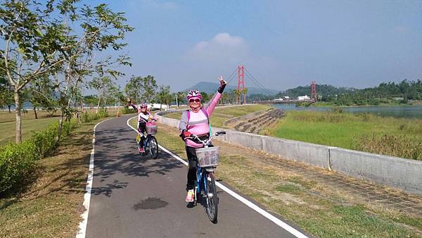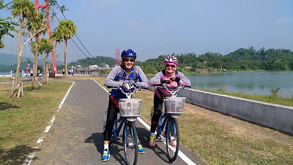 在2010年開始啟用的自行車道,長達十公里,可以一路暢快環繞水庫,沿途有兩座吊橋,一是日昇蓬萊,一是煙波虹橋,都是設計可以在橋上觀景的吊橋,騎車在上面很穩,不會太晃,但是有人認為還是下車牽引比較安全。