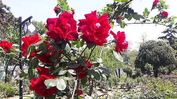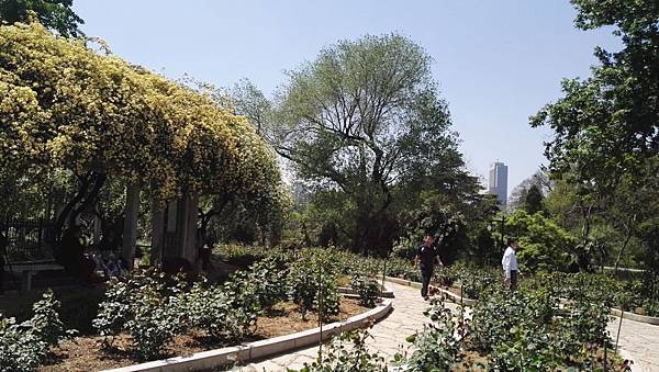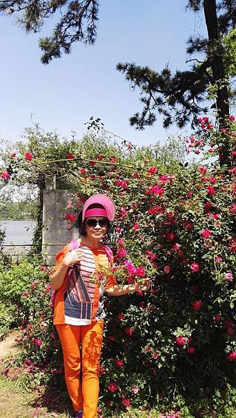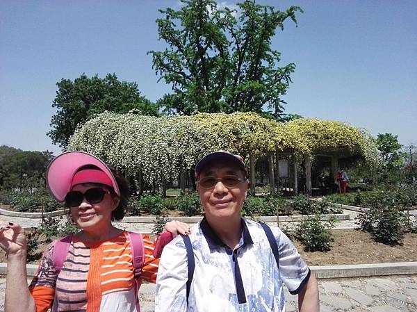 從玄武門進入園區,左右兩邊是清澈如鏡的湖水,碧波蕩漾,走過中間的長堤便是環洲。環洲的形狀呈凵字形,因環抱櫻洲在凵形內,因而得名。環洲古蹟眾多,其中以花岡岩假山石「童子拜觀音」最富盛名。洲上遍植各式花卉、日本紅楓和垂柳,微風拂來,宛如煙雲繚繞,木繡球也在環洲盛開了,吸引不少遊客的目光。逛累了,可坐在垂柳塔影堤畔,享受碧波拍浪,細柳依依的迷人風光。環洲的另一區有我最喜愛的玫瑰園,可惜大部份含苞待放,倒是花廊架上開滿白色和黃色的木香,正幽幽地散發著沁人心脾的花香。