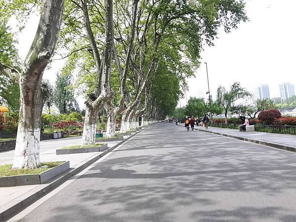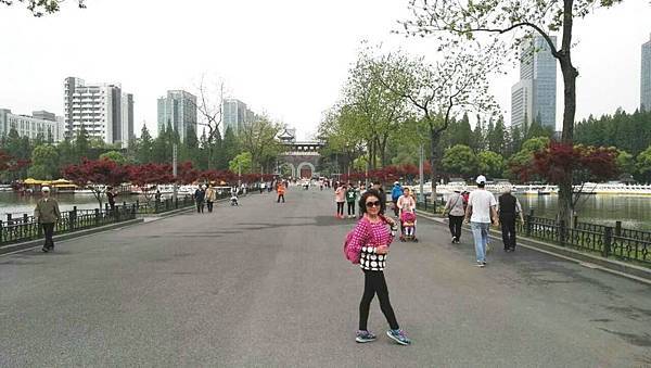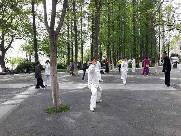 許多城市因倚湖而興、擁湖而美、因湖而名,湖泊仿佛是城市的一座心靈樂園,更是大自然給予城市的莫大恩賜,能居住在湖畔附近的人都是有福氣的人。玄武湖公園儼然是南京最大的運動公園,許多市民清晨和黃昏都會聚集公園內環湖散步或運動。大陸最時興大媽廣場舞,玄武湖水杉林下處處可見一群又一群大媽們隨著音樂節奏扭腰擺臀,跳得興高彩烈。我尤其欣賞一對身著維吾爾族服裝的男女正笑盈盈地跳著民族舞蹈,看著看著我也忍不住跟著舞動起來,其他遊客也慢慢加入,真有意思。轉過身來又看見一群練四十二式太極拳和太極劍的,這是我最熟悉的運動,當然卸下背包也跟著比劃一番。多麼希望我也能每天到這片美麗的園區來運動啊!開始羨慕這群南京市民了。