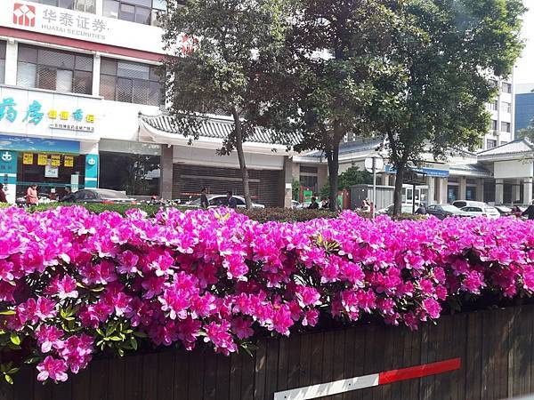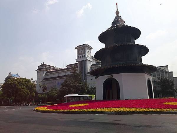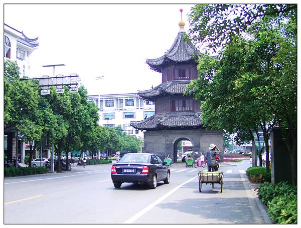 午後前往市區,車子經過市區中心文昌閣,是揚州市著名的標誌。古色古香的文昌閣是一座三層八角形建築,高25尺,圓形攢尖頂,裡面供奉文昌帝君,是市中心一座非常顯著的景點。春天的揚州,美麗藏不出,到處一片花紅柳綠,每一條馬路兩側都開滿了杜鵑花、玫瑰、瓊花和秋海棠等等,呈現欣欣向榮景象。