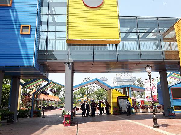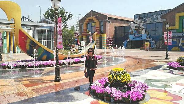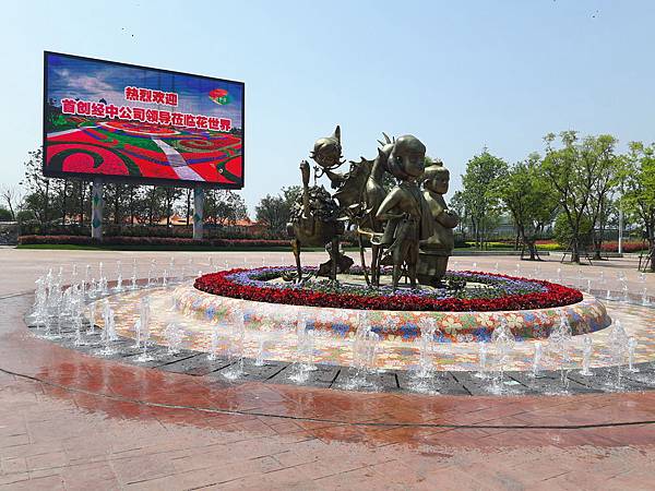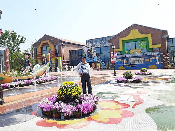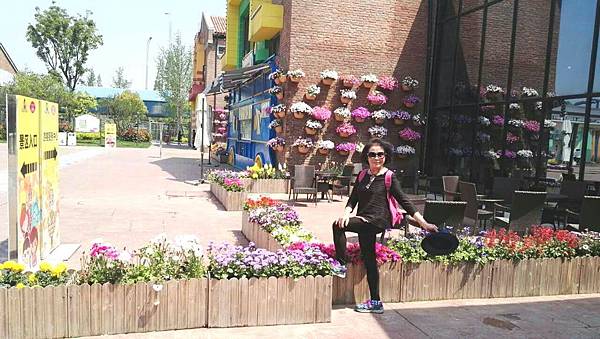 進入景區後是廣場,在這裡就能感受那種充滿童趣的卡通風佈置,環繞廣場四周的全是鮮豔奪目的鮮花和吊飾,一片生意盎然,感覺自己彷彿也進入了童話世界一樣。廣場上有各種各樣的商店,美食店鋪,電影院和趣味館等。廣場右側是花卉區,一大片五彩繽紛的圖騰式花海很難不吸引住您的目光,各式花朵爭相綻放,奼紫嫣紅,遠遠望去,不見邊際,此時真正感受到數大便是美的魅力,看得我們瞪著大眼面面相覷,驚訝得一時說不出話來。