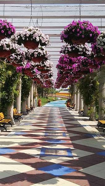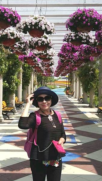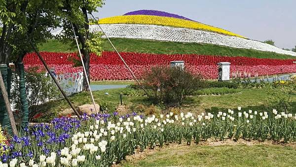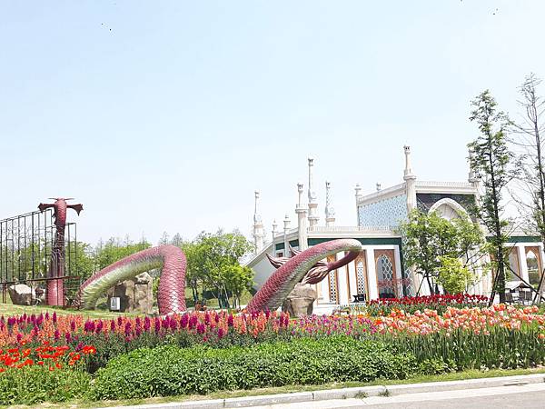 徜徉在四季花海,陶醉在五彩繽紛的花的世界裡,迎面而來的是春的氣息、花的芬芳、草的清香,我忍不住貪婪地猛做深呼吸。在50公頃大的花世界園區內共分佈著數個主題花園如;荷蘭夢幻花田、義大利花園、玫瑰花園、歐洲風情花園、創意花雕、波斯花園、東方花海、威尼斯花海等等,另設有兒童遊樂區,個個主題區都恢弘壯觀,極為令人震撼,看得出園方的用心。