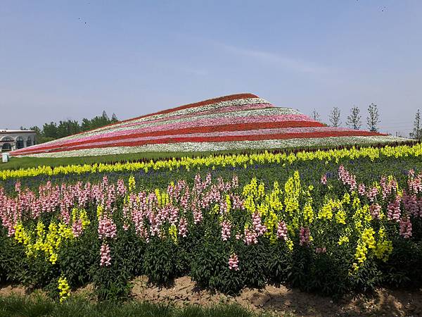 農曆三月的揚州正是花團錦簇的時節,色彩班斕的花處處開,絕非一個簡單的〝美〞字可以形容。馬可波羅花世界裡什麼花都有,起伏的丘陵被鮮豔奪目的花毯所覆蓋,如彩虹式的花帶層層疊疊,風吹來時,陣陣花浪如同大海波濤翻滾,浪漫又夢幻極了。