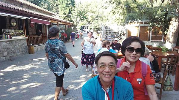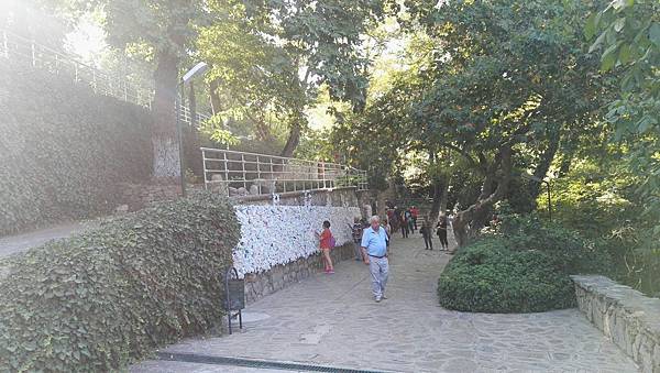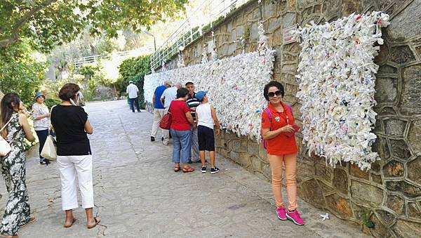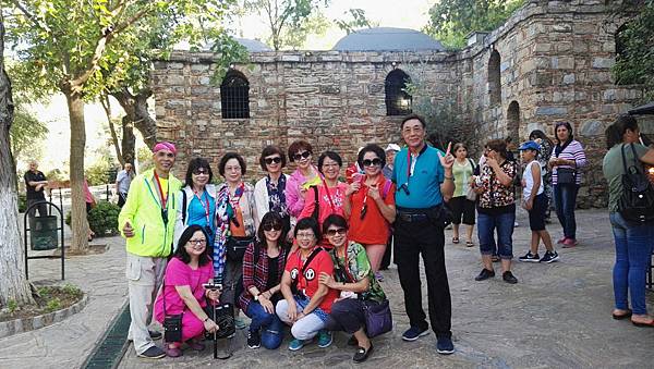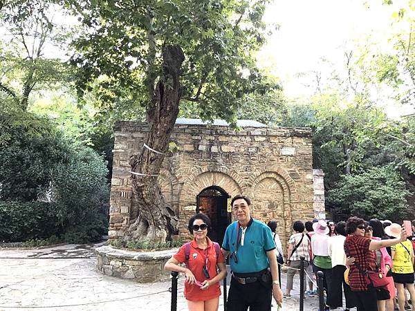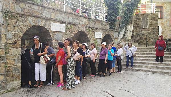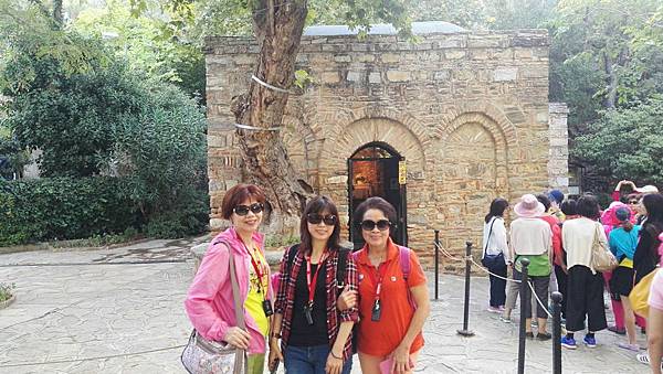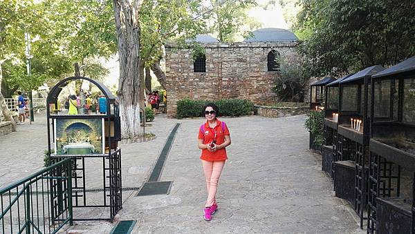 早上八點準時出發,今天要帶上拖鞋、泳衣和毛巾,因為行程到帕穆嘉麗要泡溫泉。這麽熱的天氣泡溫泉!是頭壳壞去了嗎?光用想像的就讓我冒汗了,沒辦法,跟團嘛,只好且走且瞧了。車行約一小時抵達塞爾丘克(Selcuk)著名景點「聖母瑪利亞小屋」。相傳耶穌被釘上十字架後,聖母瑪利亞的行踪即成謎,傳說是因受猶太人迫害而逃離了巴勒斯坦,門徒約翰偷偷將聖母接至以弗所附近的山中奉養及照顧至終老,雖然未經100%確認,但大部份人都深信不疑。