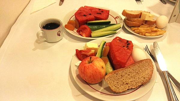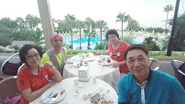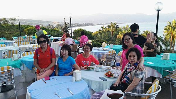 早餐時間是最熱鬧的,大夥兒忙著吃也忙著拍照,美麗的景色百看不膩。