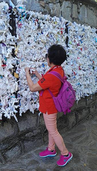 循著参觀路線往下走,下方有三處天然泉水,喝了代表健康、平安和財富。一旁的許願牆上也繫滿了朝聖著的許願紙條,我也繫上了,但願心誠則靈吧!