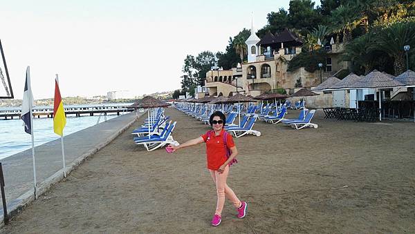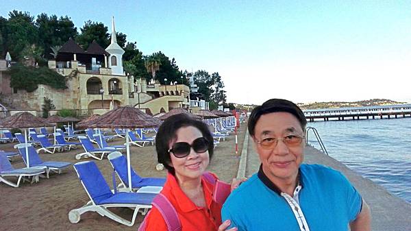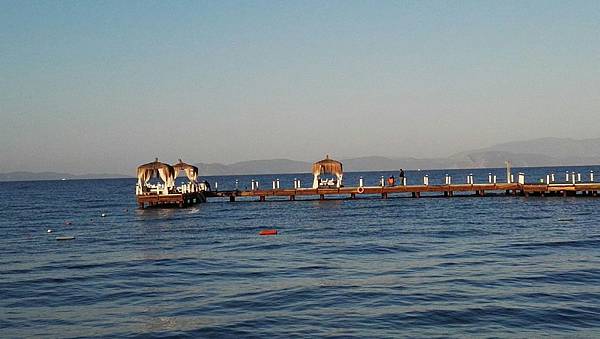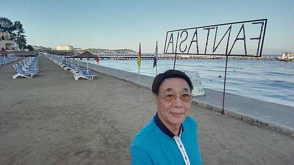 旅行第四天住宿在愛琴海邊美麗的幻想豪華Fantasia Hotel。 昨夜與海洋共舞,這是多麽美麗的旅遊方式,尤其清晨醒來,倏然發現美麗的蔚藍海岸就在窗前,靜靜等待著讓你慢慢欣賞,眼前彷彿就是一幅如明信片一般美的風景。迫不及待地奔向海邊,把握住分分秒秒的時間沐浴在和煦的晨光中,擁抱碧海藍天。終於觸摸到愛琴海的海水了,一切都不是夢!