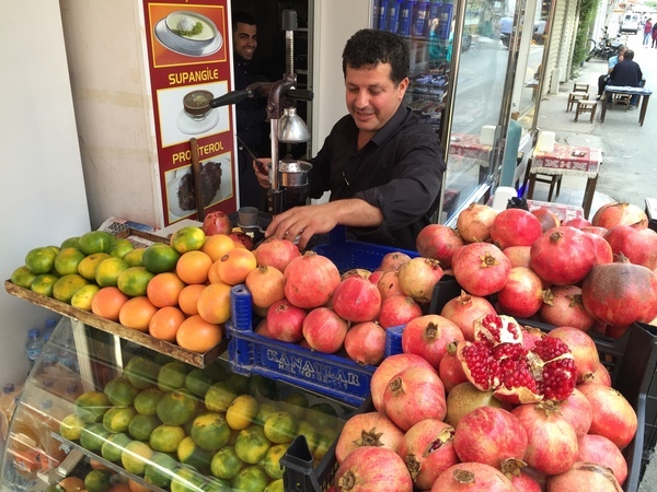 中午在一小鎮上的Sirma吃自助式午餐。充滿香料的食物真不是我喜歡的口味,只吃了兩片麵包,但自費喝了鮮搾石榴汁。下午的行程將前往棉堡~帕穆嘉麗(Pamukkale)。