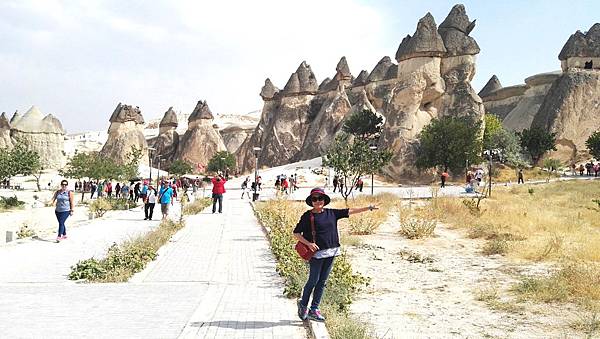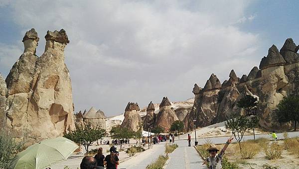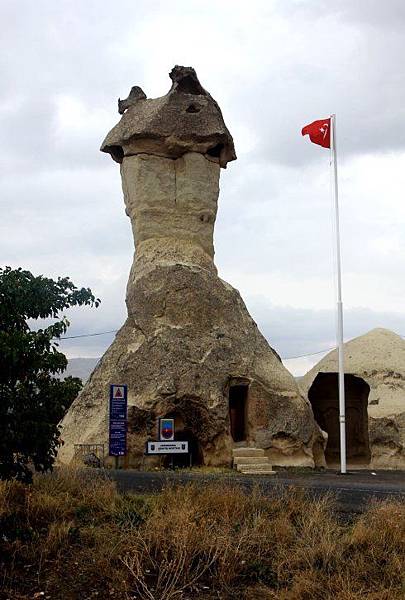 下一站大約10分鐘車程來到位於葛拉梅與阿凡諾斯中間的蘑菇谷~帕夏貝(Pasabag)。帕夏貝有著全卡帕多其亞最美、最可愛的仙人煙囪和蘑菇岩。高高聳立的蘑菇岩也稱為精靈煙囪,更有趣的是連帕夏貝的警察局也是設置在蘑菇岩內,進入這景區感覺就像置身童話故事中一般。