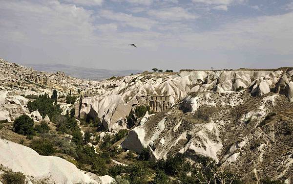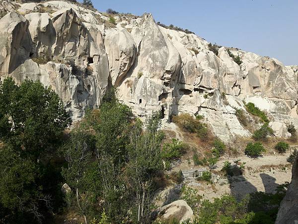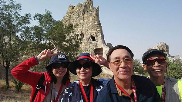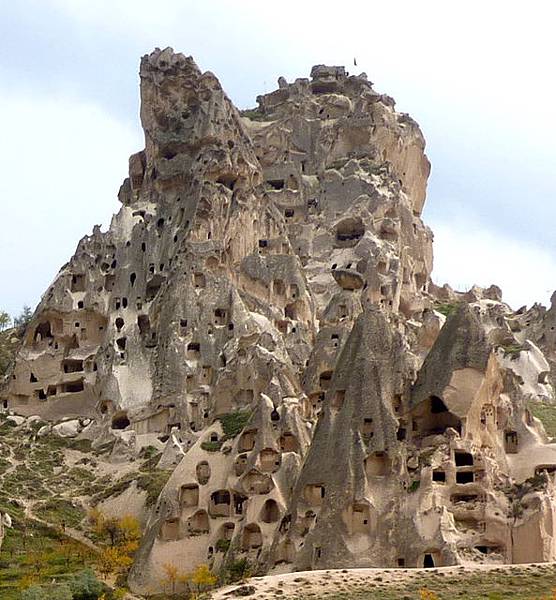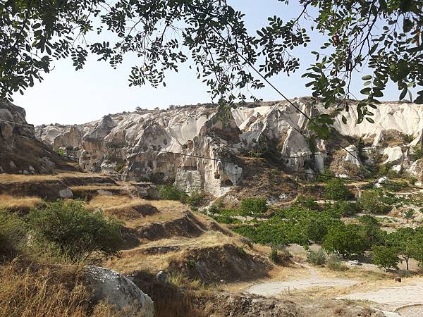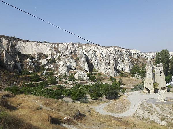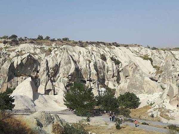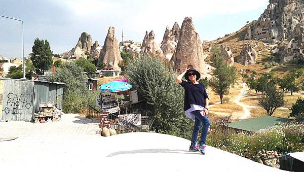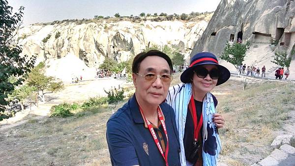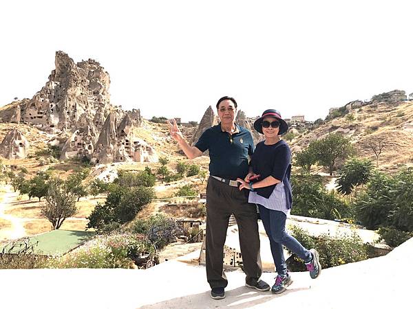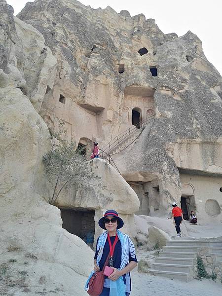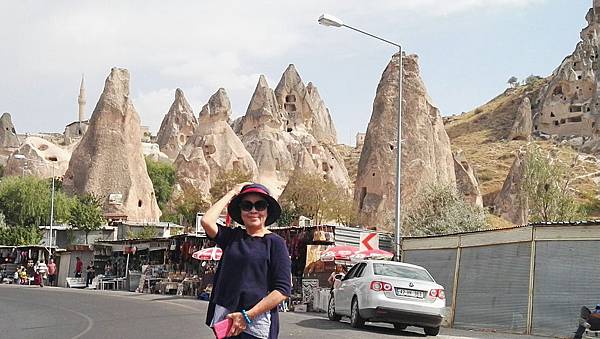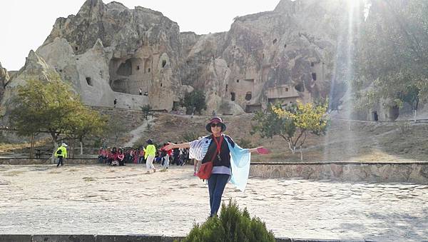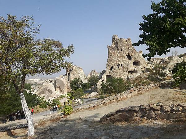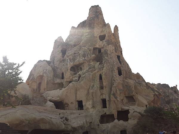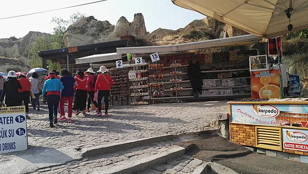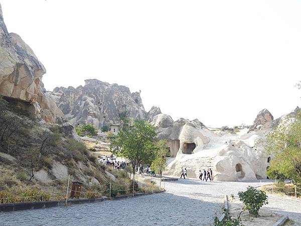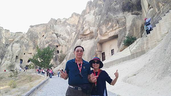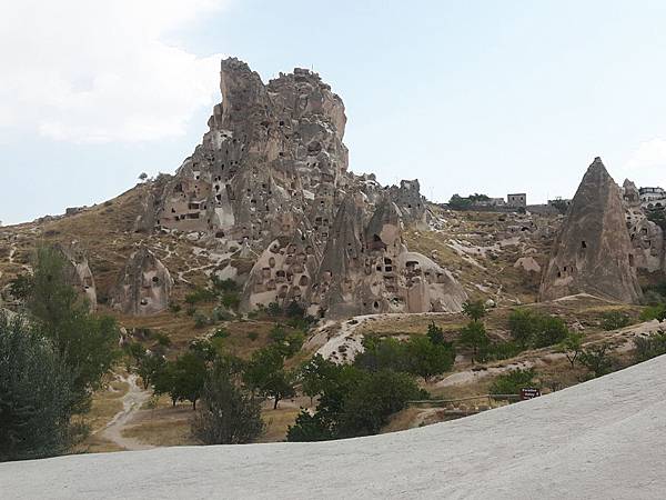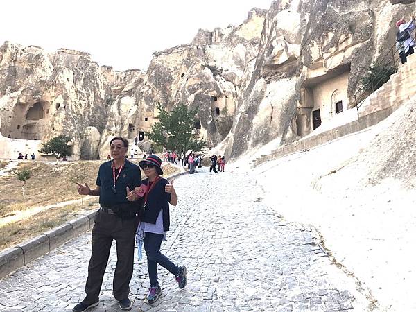 從帕夏貝到下一個景點烏奇沙城堡(Uchisar)和鴿子谷只有短短7分鐘車程。其實早上的熱汽球都曾經飛越過這些景區,但空中鳥瞰和親自到景點來看是有些不同的。烏奇沙有著最典型的洞穴社區,為了躲避敵人,他們選擇地勢和海拔較高的洞穴群居,在岩洞內鑿了許多洞口可進出或用來儲藏食物用。烏奇沙城堡的外觀就好像高聳的火山椎一樣,從很遠處就可以看到它的所在位置。離烏奇沙不遠處是鴿子谷,峽谷不深,兩旁的岩石有許多鴿子洞,我們並沒進入景區参觀,所以也沒看到有鴿子。除此之外,這附近還有紅谷和玫瑰谷,搭熱汽球時也都有看到它們呈現粉紅色澤的山谷雄姿。