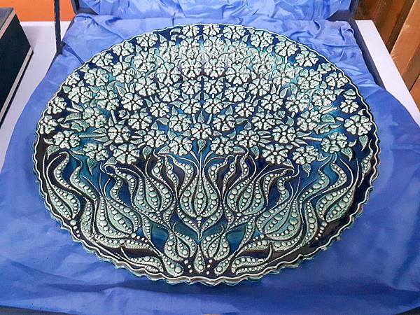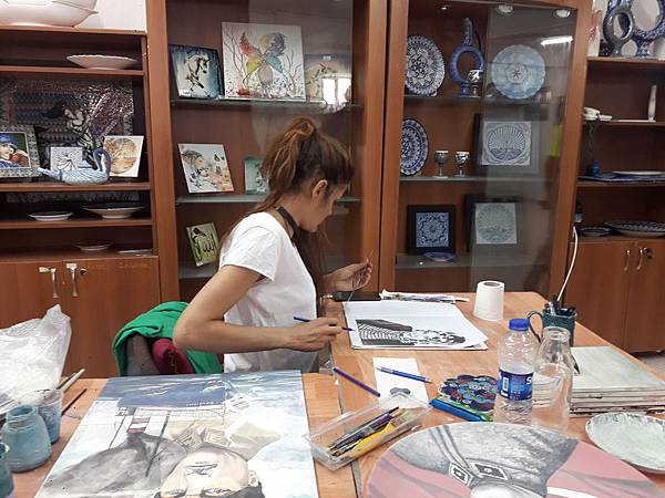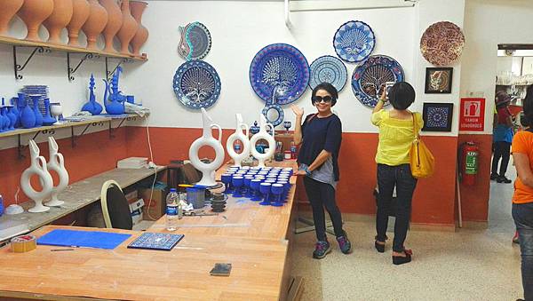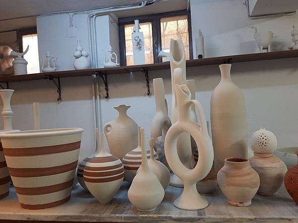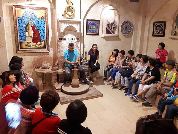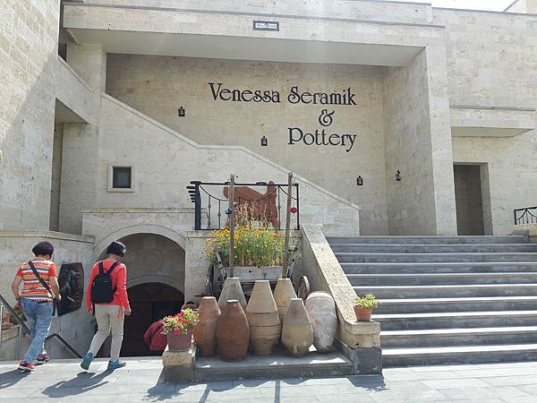 餐畢,行程來到位於阿凡諾斯區(Avanos) 陶瓷小鎮 的Venessa Seramik &Pottery陶藝館参觀捏陶工藝。這地區的泥土含鐵量高,非常適合製作各式陶瓷器,因此相關的工廠到處林立。我們進入廠區参觀整個制作過程,從拉胚、彩繪到成品,另外更有龐大的展示間展售形形色色帶著濃濃異國風情的美麗藝術品。