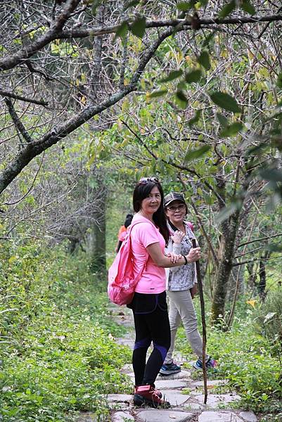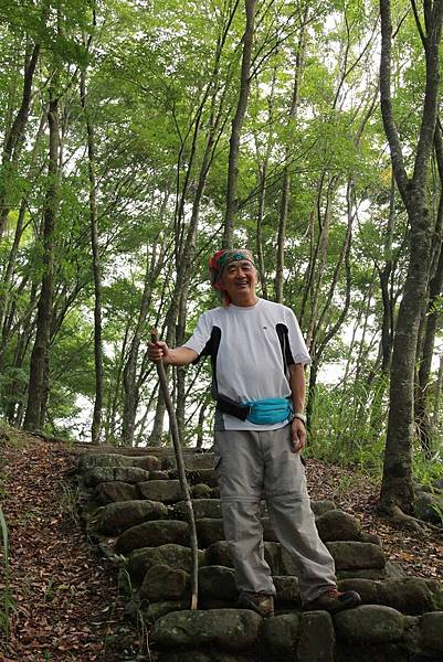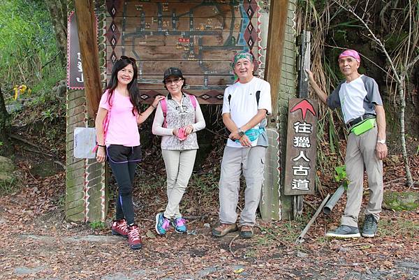 為明天的登山暖身,大鳥帶著大家走一趟部落裡的獵人古道,又名馬努多斯古道,為昔日布農族勇士上山打獵的路徑。古道總長7公里,沿著望美山的稜線而行,山不高,但一開始便是一段階梯陡坡,雖然這裡海拔只有1000公尺,但走起來還是有些吃力。獵人古道沿途可眺望玉山主峰、玉山北峰、八通關大山及郡大山等,風景秀麗,望鄉部落也種植許多梅樹、葡萄、蔬菜、櫻花樹,花季期間來訪一定更美。走過那段緩坡後不久便可至一片開闊平地,這裡有石板屋造型的涼亭,並可俯瞰山下的望鄉部落和溪岸景觀。