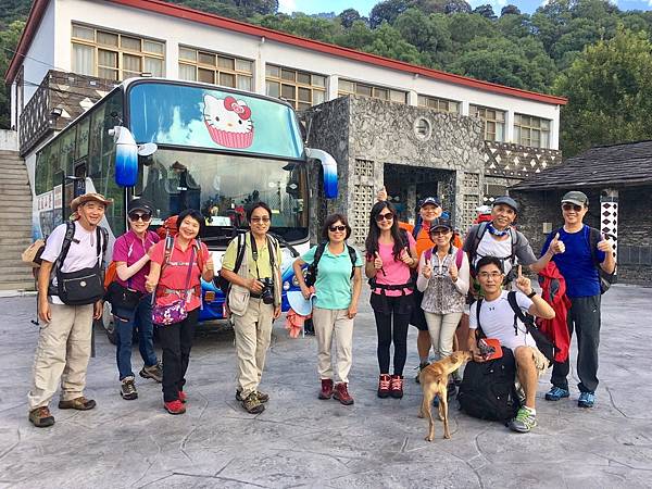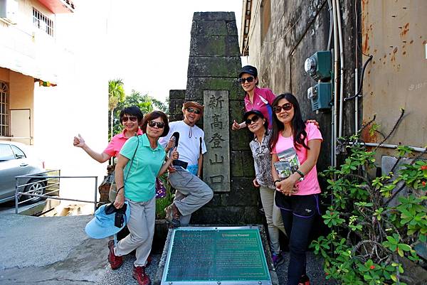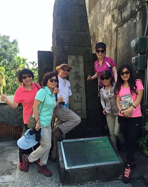 期待的日子終於到了,早上10點集合於台北車站,領隊兼司機大鳥哥和我們11人會合準時出發。本來12人的團體,因素娥腿傷退出,有小小的遺憾。20人座的中巴每人佔一個大位子,坐得舒服,大家也聊得開心。午後抵達水里,午餐於董家三兄弟肉圓,來水里必吃的地方小吃。午餐後行程繼續,途中在台21線與台16線岔路口、新中橫公路起始點的玉山舊登山口紀念碑拍照。此新高登山口紀念碑建於1930年,為當時登玉山的真正入山口。從此處登玉山要再爬3600公尺落差才能登上玉山主峰,相較於現在位於塔塔加鞍部2600多公尺的登山口,才了解以前登玉山比現在要困難多了。