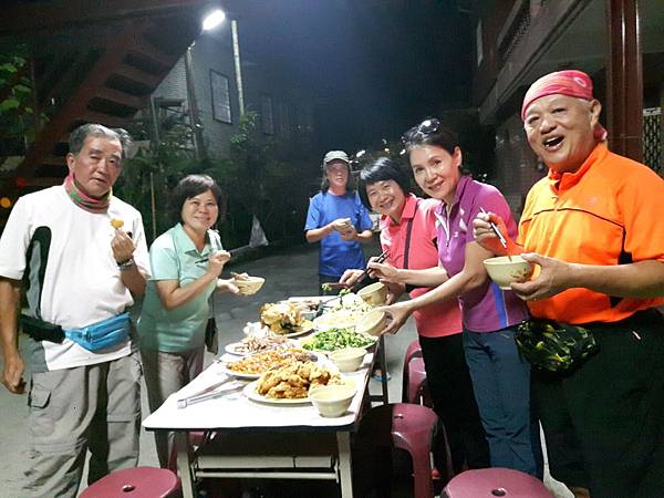 傍晚時分返回民宿,大夥兒在陽台泡茶聊天,民宿主人忙著準備豐盛原民風味晚餐。星空下的晚餐賓主盡歡,大鳥交待明天的集合時間後,各自回房休息。四人一室的通鋪住起來不算舒服,又想著明天的未知行程,所以今夜失眠了……