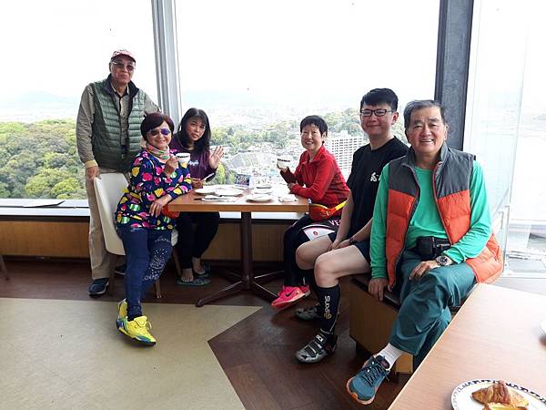 早餐設在飯店的頂樓,五星級的餐點和居高臨下的美景無需多費唇舌,用餐時間上遠比前些天充欲許多,可以慢慢地享受美食。大夥兒忙累了四天,今天是要好好犒賞自己的時候,吃一頓豐盛的自助式早餐,邊吃邊聊,回味著島波海道和飛島海道騎乘的點點滴滴,的確是滿懷回憶和感動。要再三感謝領騎的Swift Wang王先生和葉爸,若不是他倆的因緣際會促成,或許就不會有這一趟瀨戶內海騎乘之旅了。