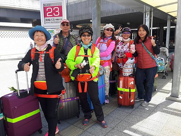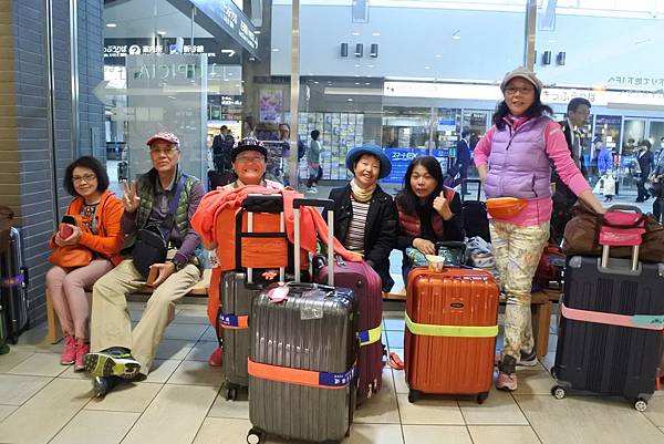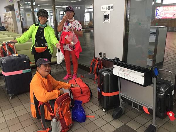 下午兩點左右準備轉搭巴士到岡山空港。照著指標走到巴士站排隊,人多行李也多,隊友的單車裝箱後體積較大,巴士竟然拒載,超儍眼!多次交涉不成,只好帶著大箱子搭Taxi到岡山機場,希望觀光局能正視此問題而有所改善,否則對車手是一大不便。