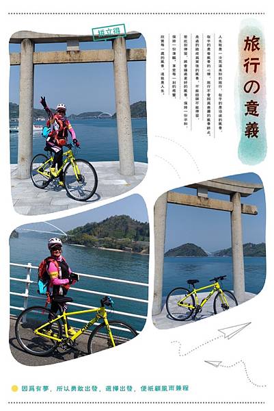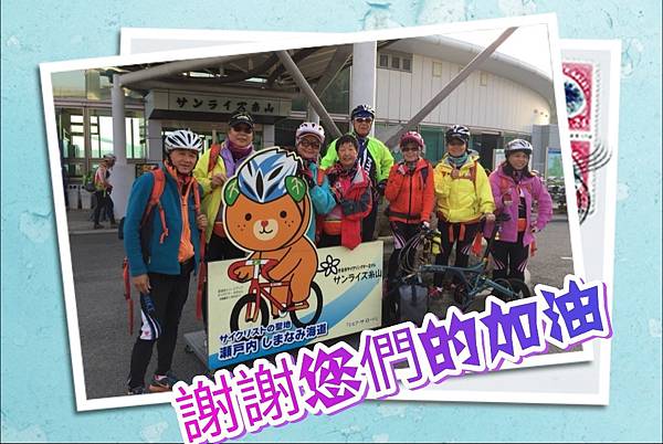 七天的瀬戶內海單車假期結束了,快樂時光總是過得特別快,感謝同行的夥伴們,帶著滿滿的兩憶三千萬(回憶、記憶、千萬要健健康康、千萬要快樂、千萬要活在當下),我們要返台了。