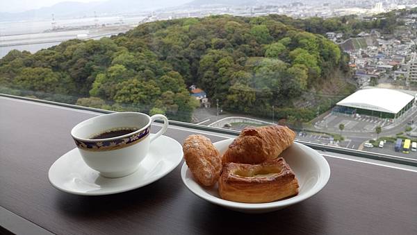 早上八點多揮別了挫若旅館,拉著行李再度行經代表著倉敷的白牆、水道和柳樹的美觀街區來到倉敷駅,便利商店買早餐,隨即搭JR電車到岡山,準備在岡山走逛一陣後下午再到機場。