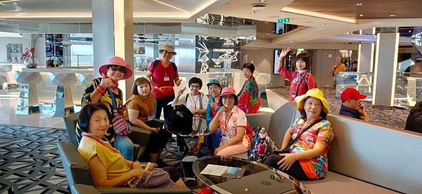 酒足飯飽,信步走到七樓看見遊客大排長龍,原來都是準備要和船長拍照的,照片是收費的唷,感覺未免太商業化。我們還是到劇場觀賞太陽馬戲團的表演吧,要不,累了一天,回房休息也好,正巧欣賞到美麗的地中海日落,amazing!