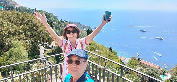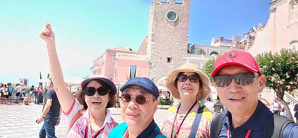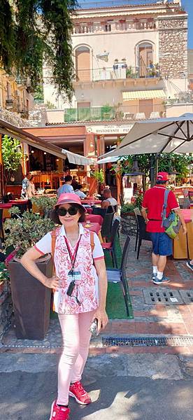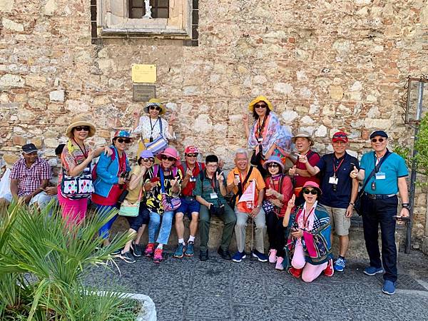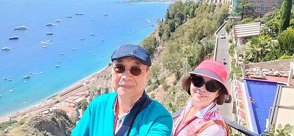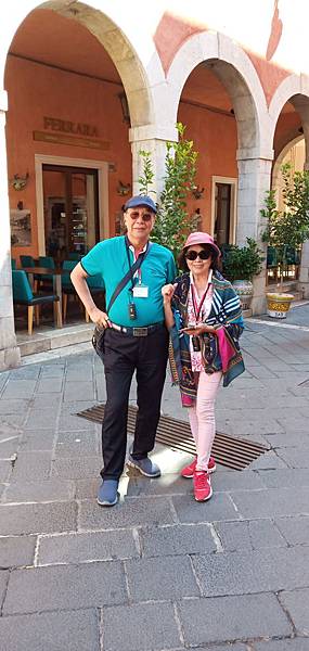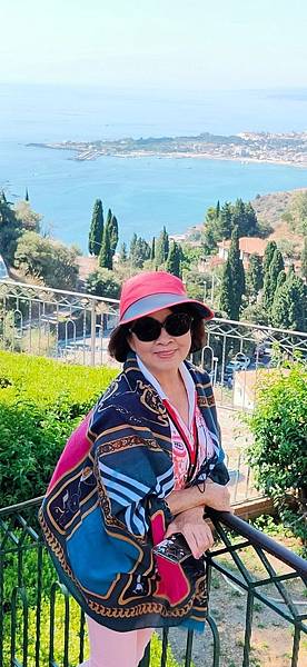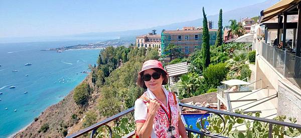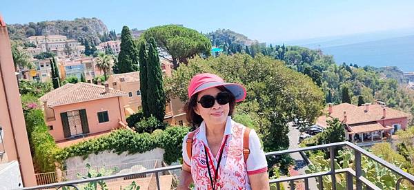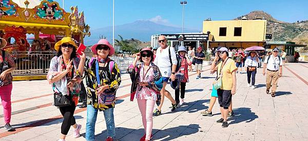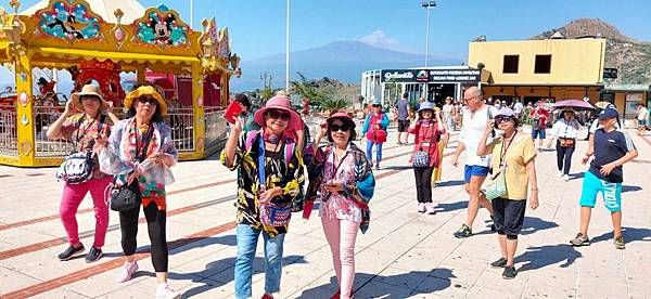 船於早上8點靠岸西西里島港口梅西娜~一座美麗的現代化都市。我們9點集合後下船,一小時後,遊覽車將我們帶到島上最美麗的觀光景點~陶米納Taormina。