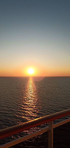 遊輪的第6天了,每天幾乎都5:30分左右起床,也總是喜歡先到陽台上看看遼闊的大海、吹吹海風,迎接溫暖和煦的日出晨光,或尋覓早起覓食的海鳥在海面上翱翔的輕盈姿態。