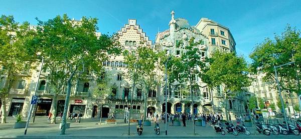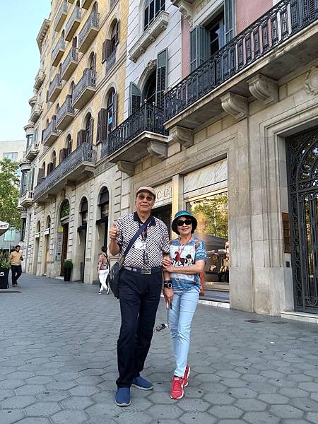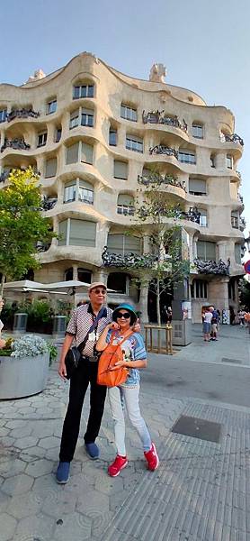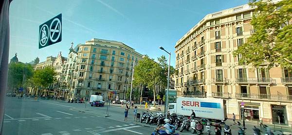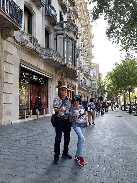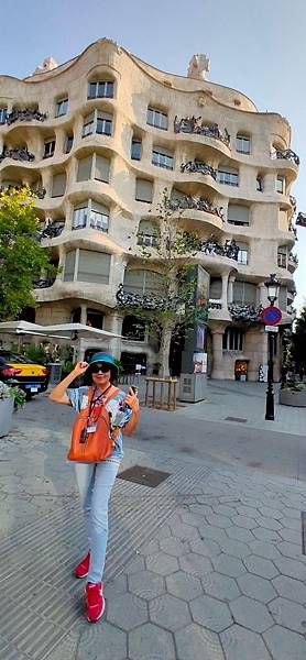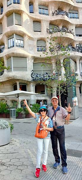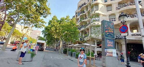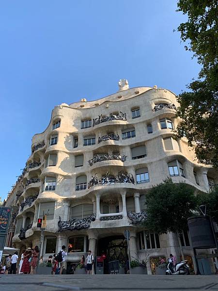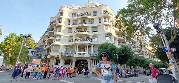 經過漫長的兩天航行後,遊輪於早晨7點抵達西班牙海洋之都、藝術之城、高第之鄉、加泰隆尼亞的驕傲~巴塞隆納。8:30分在香檳廳集合後,隨即安排上岸遊覽。首站是巴塞隆納最時尚、最貴氣、最有名的購物精品大街~感恩大道,又名格拉西亞大道(Passeig de Gracia) 。格拉西亞大道非常寬敞,兩旁行道樹高大蒼勁,一片綠意盎然,很適合拍照。大道兩側精品店林立,各國名牌應有盡有,想要大買名牌精品的來此走一趟,決對會讓你買到手軟。所幸我們抵達時間還太早,精品店還未開門營業,只能window shopping,否則,錢包又要大失血了。感恩大道除了好買之外,許多知名巴塞隆納景點例如米拉之家、巴特婁之家也都位在格拉西亞大道上,先來遊覽耀眼炫目的米拉之家吧。