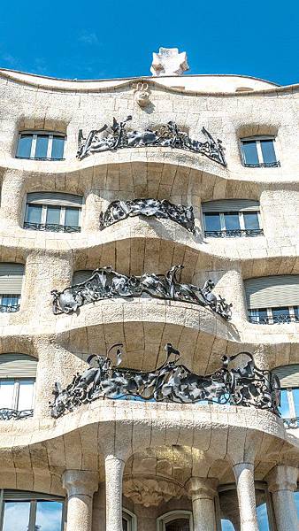 米拉之家建於1906年至1912年間,是富商佩雷米拉Pere Mila結婚前請高第設計的,1984年被列入世界文化遺產。米拉之家總共有六層樓,33個陽台、150扇窗戶,有些樓層是有人居住或用作營業的,遊客可購票入內或至頂樓參觀,可惜我們因時間限制沒有安排,所以,雖然來兩次,都只過門不入。