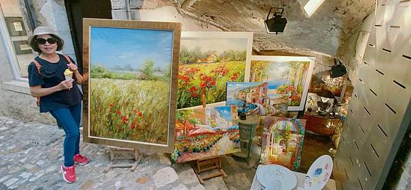 從嘉德到亞維儂只要半小時車程,由於整個亞維儂古城是被城牆圍繞起來,遊覽車無法進入,我們在城門前下車後改以步行進入市區。城市內巷弄不少,空氣中有滿滿的薰衣草香味,因為沿街都有很多商店販賣與薰衣草相關的產品,尤其是香皂,乾燥薰衣草等等,香氣瀰漫在空氣中,有提神醒腦的功效,愛購物的隊友沿街買得不亦樂乎。