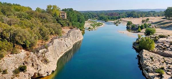 嘉德水道橋橫跨加東河湛藍的河水映襯著綠色山谷,景色非常秀麗多姿。這座有著2000年歷史的偉大建築至今依然完好屹立,見證了古代羅馬入的建築技術令人敬佩。橋兼具美觀與實用性,更與加東河青山綠水的景色完美協調,讓人流連忘返。從旁邊小徑往山坡上爬到水道橋上層,俯視整個建築,完美的石砌技術令人嘆為觀止。現在,水道橋上層已不再運水,但下層仍可供人車通行,讓人見證這座世界文化遺產最輝煌的一面。