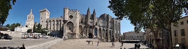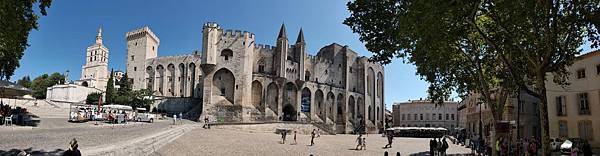 哥德式建築、雄偉壯觀的教皇宮外形像一座尖頂浩瀚的巨大城堡,氣勢磅礡,總面積15000平方公尺,高約50公尺,這裡曾經是14世紀時天主教教皇的豪華宮殿。14世紀初,羅馬教皇與法國國王之間的權力與派系鬥爭,教皇克雷蒙為了安全,而將教廷從羅馬梵蒂岡遷至亞維儂為定居所在,此後,歷經七位教皇都在此繼續執行教皇職權,使得亞維儂成為歐洲天主教的朝聖重地。教皇宮不僅是教皇的宮殿,也是一座要塞。