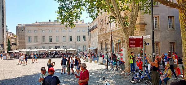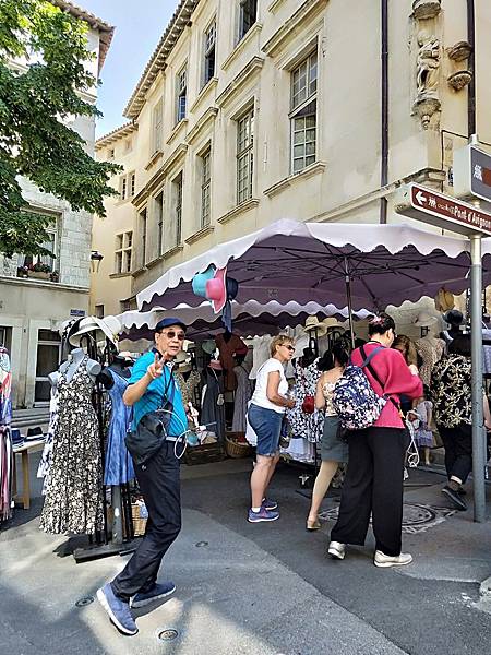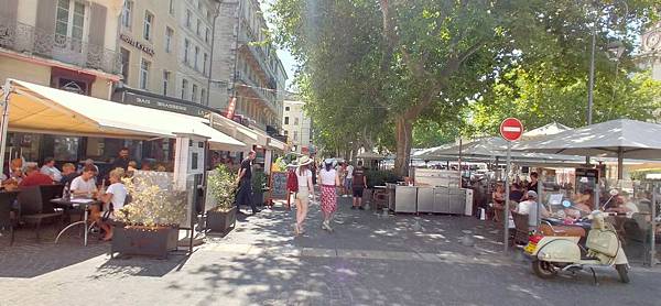 規模不大的亞維儂市區內相當熱鬧,餐廳和露天咖啡館林立,來自世界各地的遊客熙來攘往,廣場上街頭藝人賣力表演著,我們暫時無暇顧及,先吃午餐去。