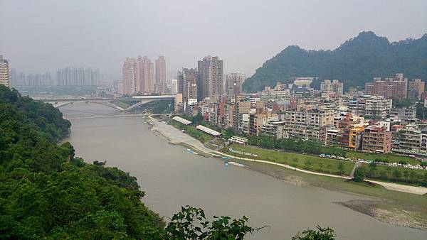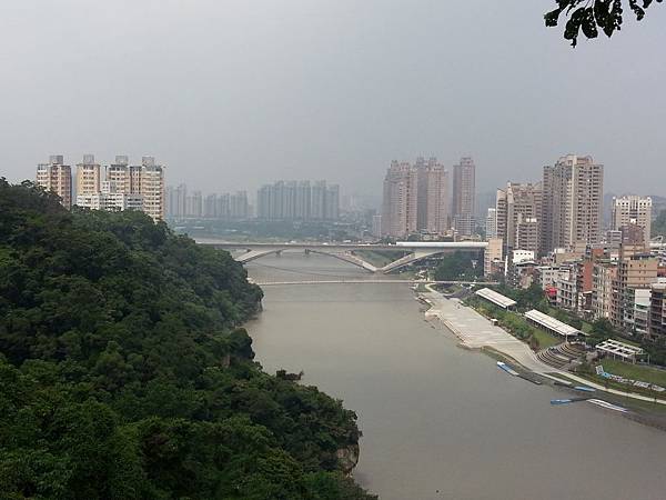 英明的隊長決定帶我們先看山再看水、也就是說先走綠線的步道登山、約一公里、回程再走藍線至渡船頭、路程也大約一公里、距離都不遠。其實兩條步道都屬大眾化路線、整理得非常好、沒有太困難的陡坡、加上和美山上綠樹成蔭、鳥啼蟬鳴聲從不間歇、因此步道走起來輕鬆愉悅。我們沿路賞景、走走停停、林中棧道規劃完善、除了常見路旁有椅子供休息之用、也常見處處有休息平台、遊客在平台上觀景、亦可遠眺。和美山雖然不高、但視野展望極佳、可眺望台北盆地、101大樓、四獸山、觀音山、隔著新店溪、甚至可望見獅頭山的雄姿呢!
