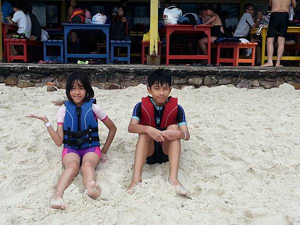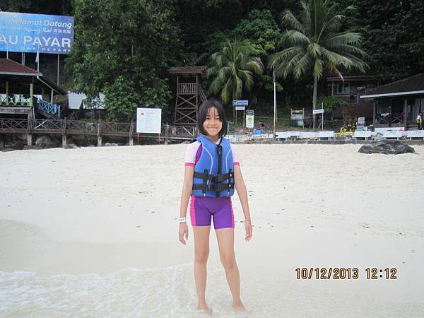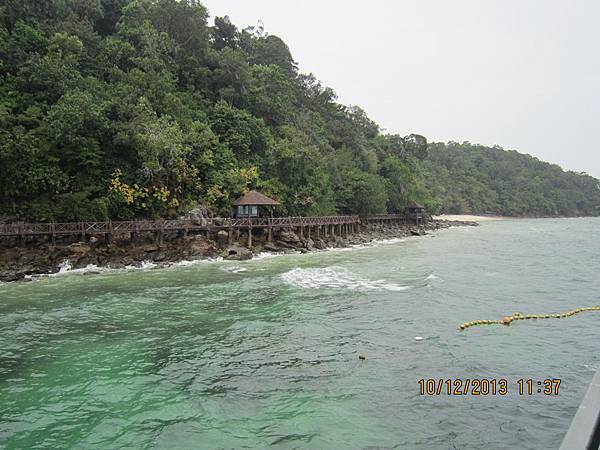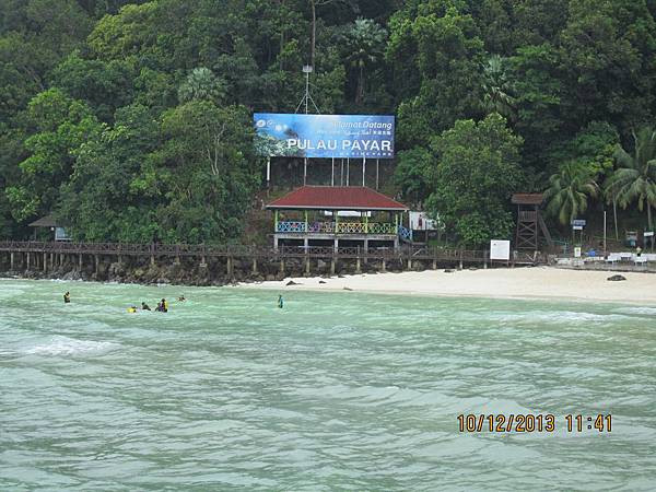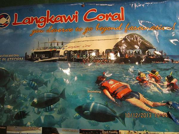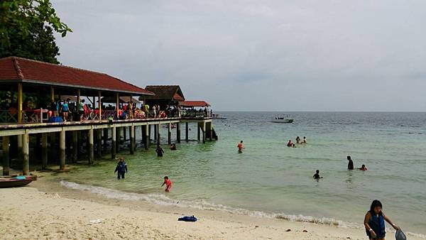 潛在水裡、透過清澈的海水可以看到海底珊湖、色彩艷麗的魚群從身旁擦身而過、時而左、時而右、您伸手便可撫摸到、謝老爺說好想抓一尾青衣好在晚餐時加菜呢!可惜我們都沒有水底照相機、無法拍攝到美麗的海底世界和五彩繽紛的魚群。浮潛之餘、遊客也可以在這一片細白的沙灘上漫步、這裡的沙細白柔滑、就算不浮潛、堆沙、戲水也非常過隱、甚至坐在岸邊欣賞眼前美景、細細品味渡假的輕鬆也備感樂趣無窮。下午一點整、主辦單位送來午餐便當、浮潛的泳客也回到岸邊涼亭用餐、但過了好一會兒怎麼都未見我們家謝老爺上岸來、讓我們相當不安、焦急地在岸上搜尋他的身影、原來他被海底奇幻世界的美深深吸引住了、看得連午餐時間都忘了。午餐後、意猶未盡的遊客繼續浮潛至到下午三點我們才離開返回蘭卡威。