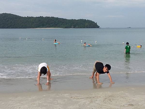 回到酒店、趁著美好月色、我們又再度漫步沙灘、一個個腳印留在沙灘上、也把蘭卡威的美深深地烙印在心裡。