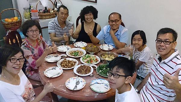 離開家十幾天、今天下午要回台北了、大侄女Venice一家四口也要回新加坡上班上學、嫂子煮了一桌好菜替大家餞行、心裡實在很感動也很慚愧、想到以前年少時少不更事、曾做了些對他們不敬的事、待懂事後雖事過境遷、但心中仍然懊惱、也想借此機會向兄嫂說聲對不起!但我相信他倆都包容了我!